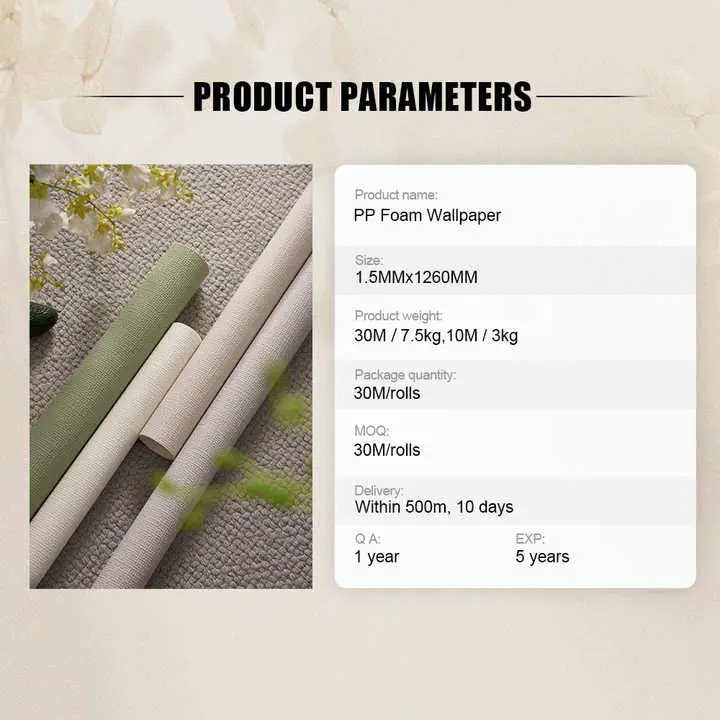 · Večfunkcionalne prednosti: Ta ozadje ponuja vrsto prednosti, vključno z antistatičnimi lastnostmi, toplotno izolacijo in enoletno garancijo, ki uporabnikom zagotavlja duševno mirovanje in dolgotrajno rešitev za njihove potrebe po notranjem oblikovanju.